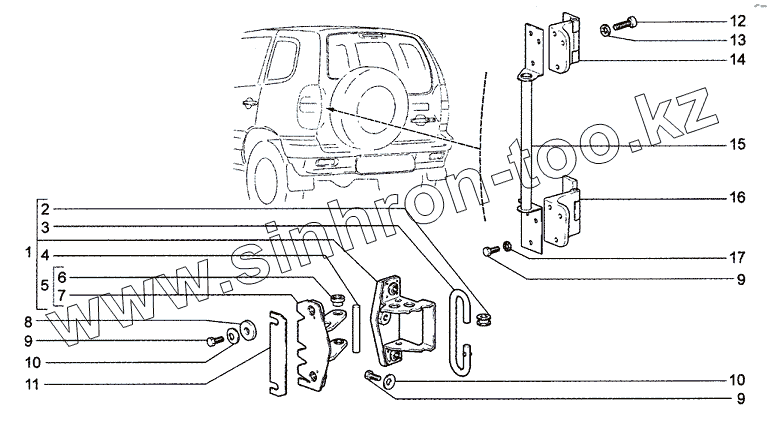 Каталог запасных частей к технике: Chevrolet Niva 1.7. Навеска двери задка