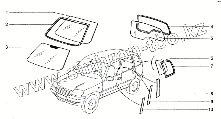 Каталог запасных частей к технике: Chevrolet Niva 1.7. Окна