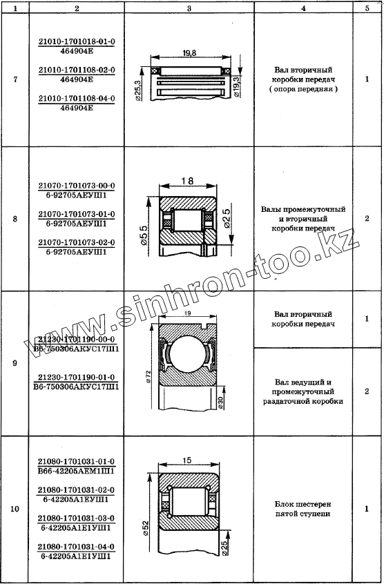 Каталог запасных частей к технике: Chevrolet Niva 1.7. Подшипники № 2