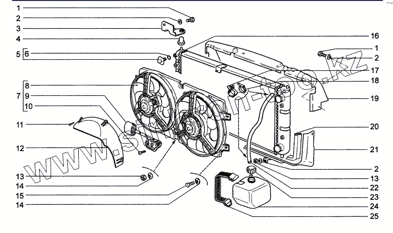 Каталог запасных частей к технике: Chevrolet Niva 1.7. Радиатор (LC, GLC)