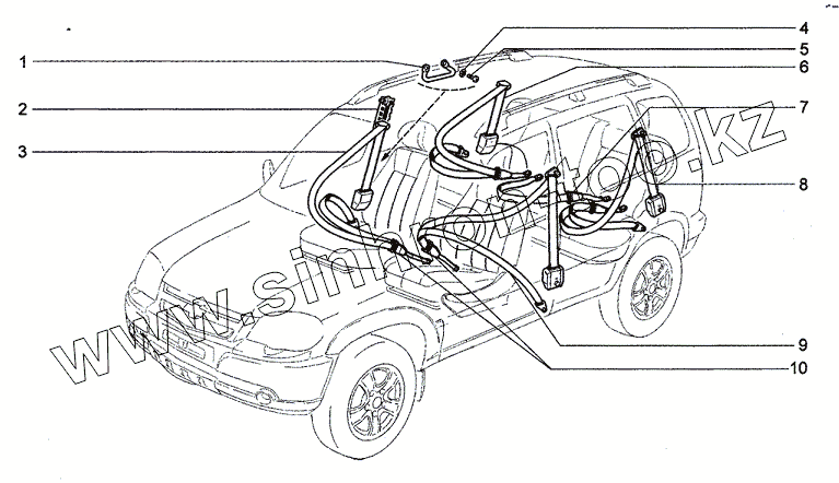 Каталог запасных частей к технике: Chevrolet Niva 1.7. Ремни безопасности
