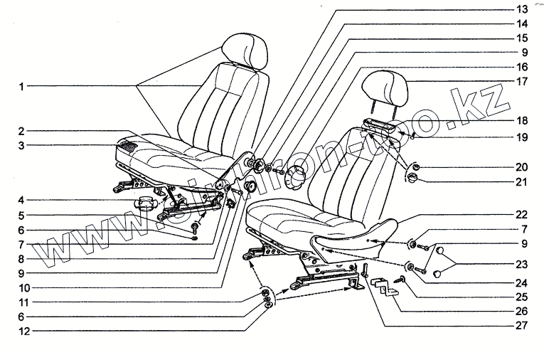Каталог запасных частей к технике: Chevrolet Niva 1.7. Сиденья передние