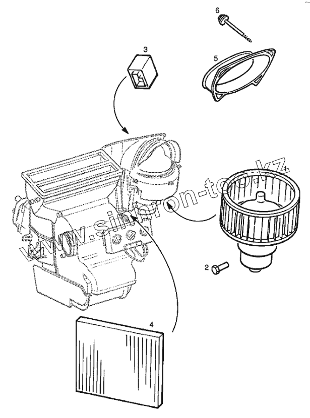 Каталог запасных частей к технике: Chevrolet Viva. Электродвигатель вентилятора и корпус