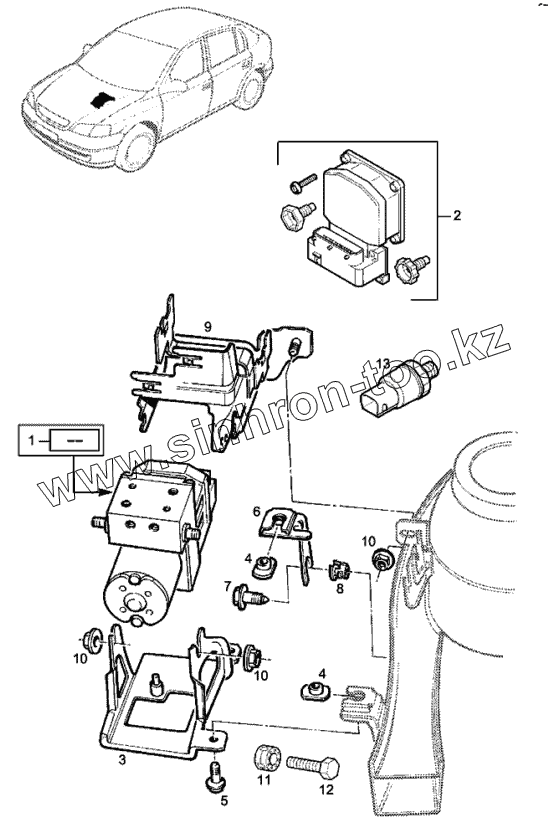 Каталог запасных частей к технике: Chevrolet Viva. Гидроагрегат АБС