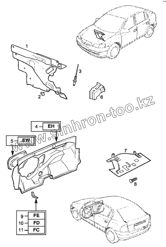 Крепления отделки передней двери