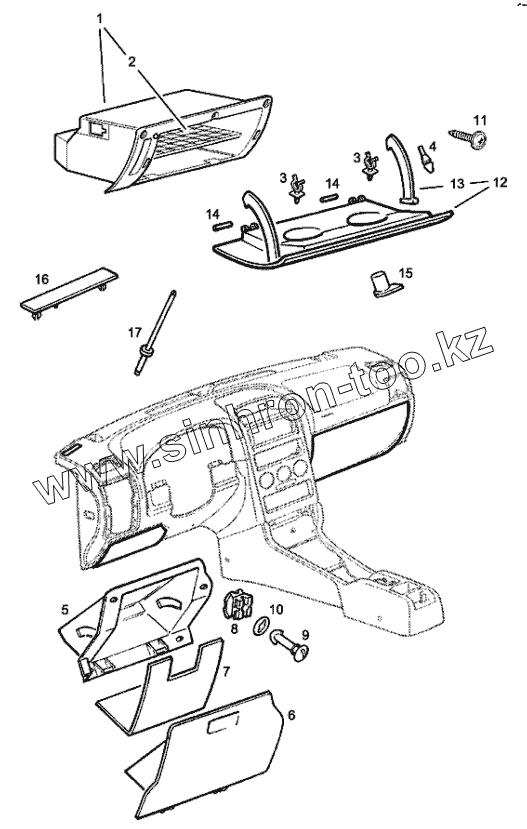 Каталог запасных частей к технике: Chevrolet Viva. Корпус панели приборов