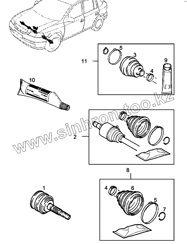 Комплект, ремонтный, внешнее соединение, вал оси