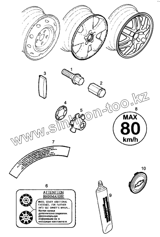 Каталог запасных частей к технике: Chevrolet Viva. Крепления колеса