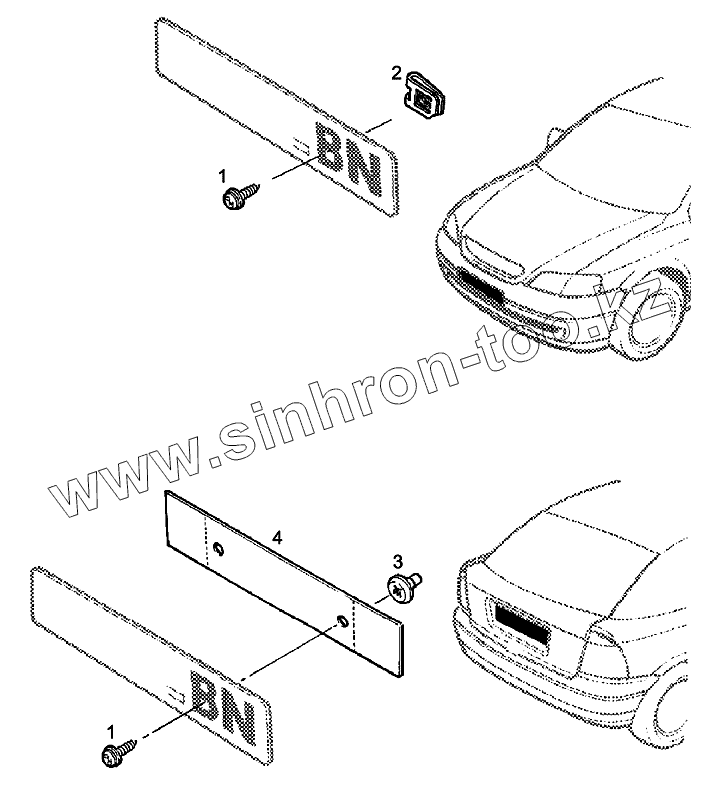 Каталог запасных частей к технике: Chevrolet Viva. Крепления номерного знака