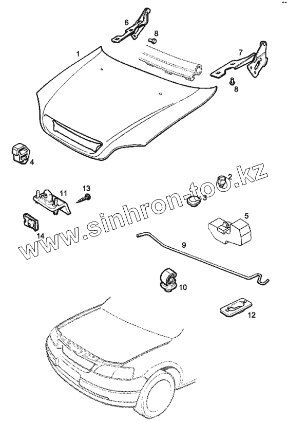Каталог запасных частей к технике: Chevrolet Viva. Панель капота