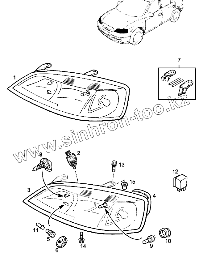 Каталог запасных частей к технике: Chevrolet Viva. Передние фары