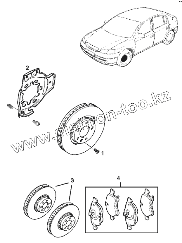 Каталог запасных частей к технике: Chevrolet Viva. Передний тормозной диск и щиток