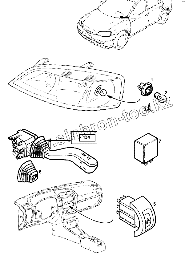 Каталог запасных частей к технике: Chevrolet Viva. Передняя лампа сигнала поворота и крепления