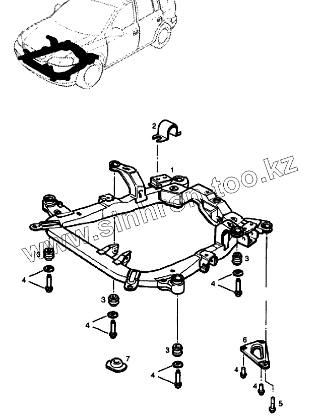 Каталог запасных частей к технике: Chevrolet Viva. Подрамник двигателя и передней подвески