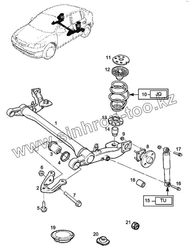 Ограничитель, пружина задней оси
