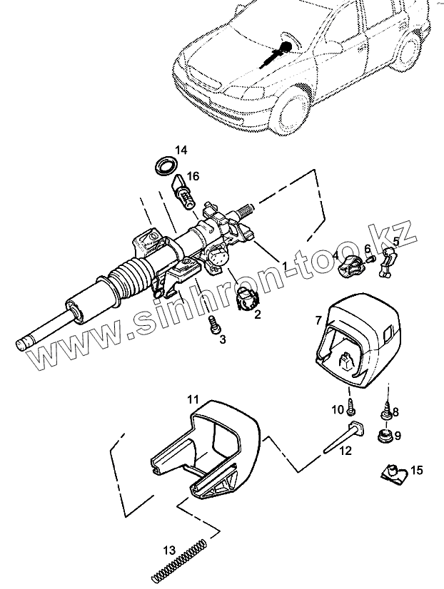 Каталог запасных частей к технике: Chevrolet Viva. Рулевая колонка