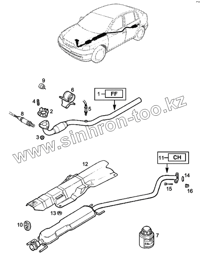 Каталог запасных частей к технике: Chevrolet Viva. Система выпуска отработавших газов с нейтрализатором