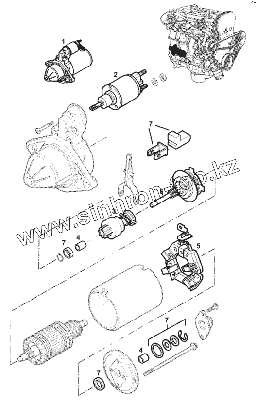Каталог запасных частей к технике: Chevrolet Viva. Стартер в сборе