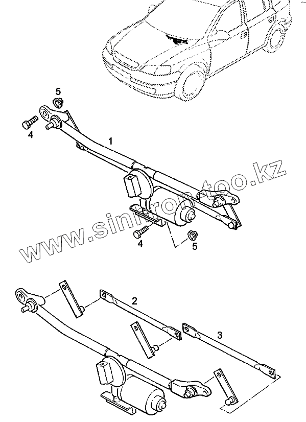 Стеклоочиститель ветрового стекла в сборе с электродвигателем и рычажным механизмом, ЛСП