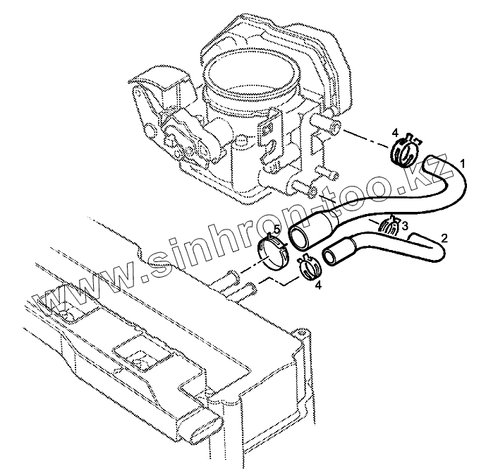 Шланг вентиляционный, крышка головки блока цилиндров к корпусу дроссельного клапана