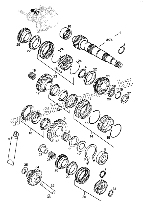 | 26 | 57 18 053 | Шестерня, пятая скорость, 33зуб. | |