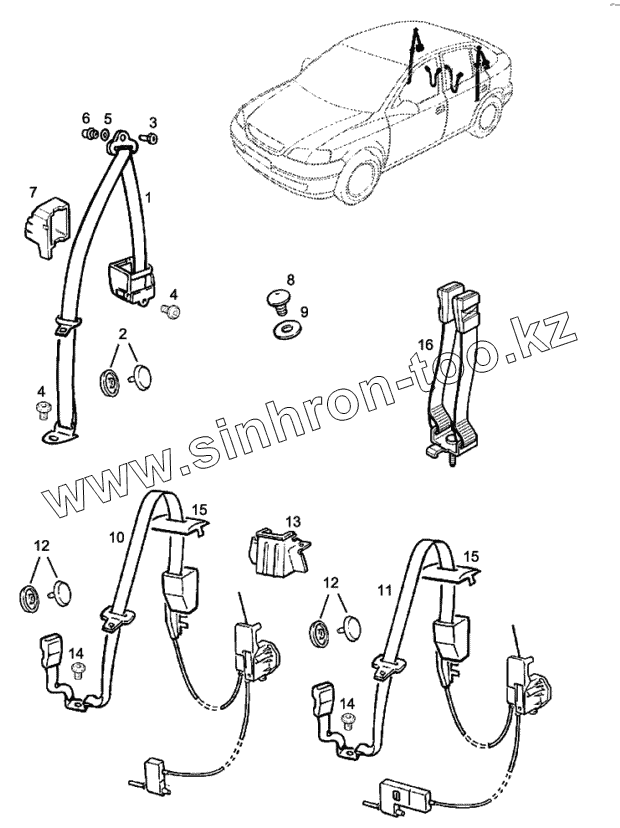Каталог запасных частей к технике: Chevrolet Viva. Задние ремни безопасности