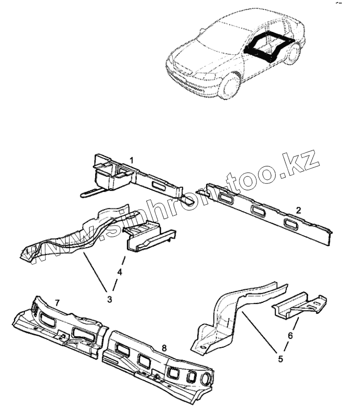 Каталог запасных частей к технике: Chevrolet Viva. Задний порог пола и поперечная балка