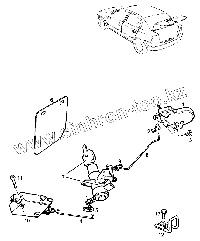 Шток, замок крышки багажника к электродвигателю центрального замыкания