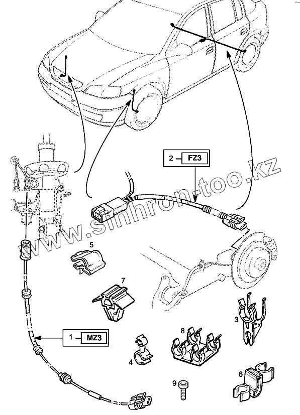 Каталог запасных частей к технике: Chevrolet Viva. Жгут проводов датчика скорости колеса