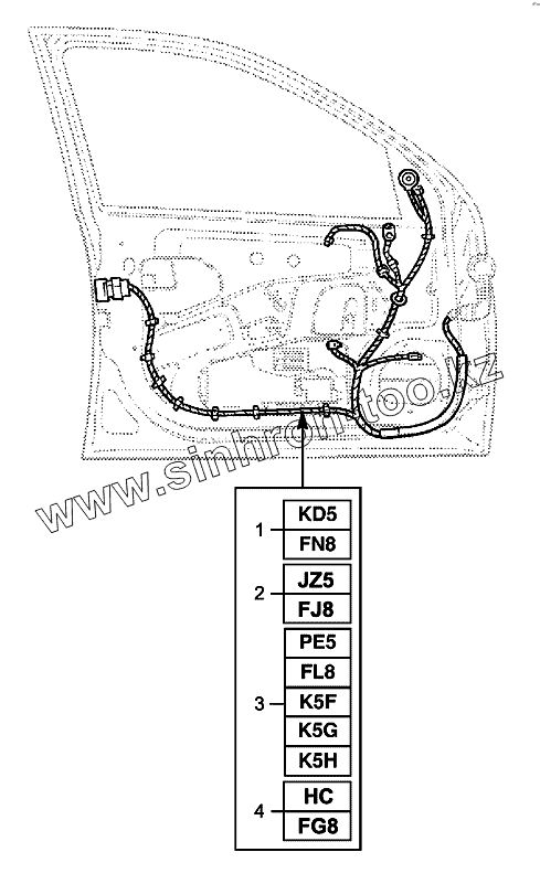 Каталог запасных частей к технике: Chevrolet Viva. Жгут проводов передней двери