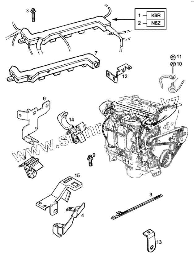 Кронштейн, жгут проводов впрыска топлива к трансмиссии