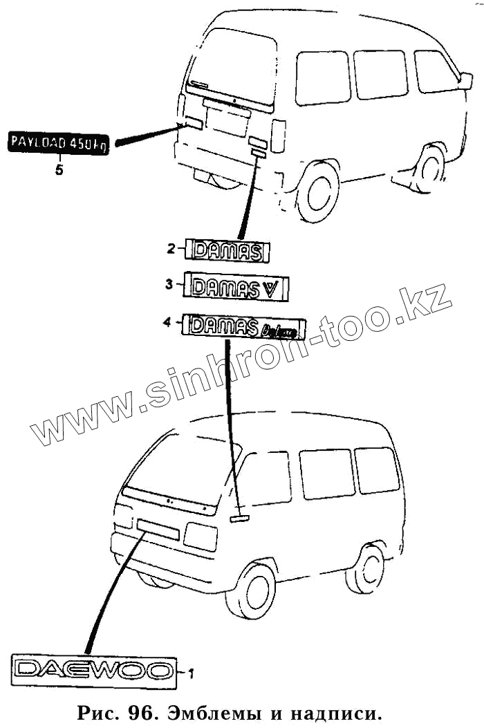 Каталог запасных частей к технике: Daewoo Damas. Эмблемы и надписи