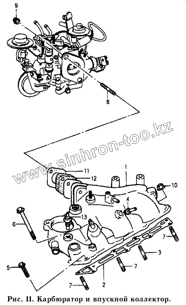 Каталог запасных частей к технике: Daewoo Damas. Карбюратор и впускной коллектор