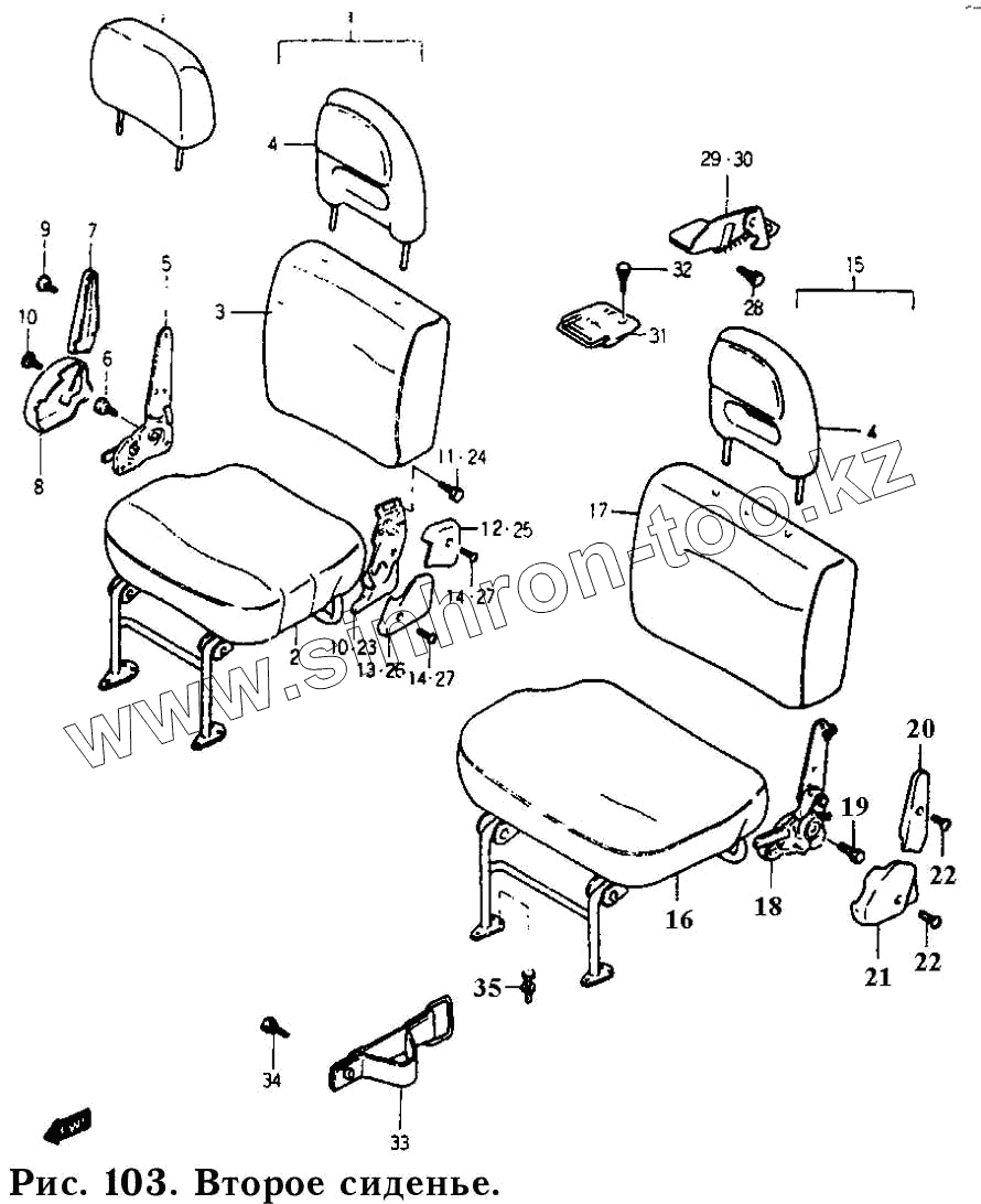 Каталог запасных частей к технике: Daewoo Damas. Второе сиденье