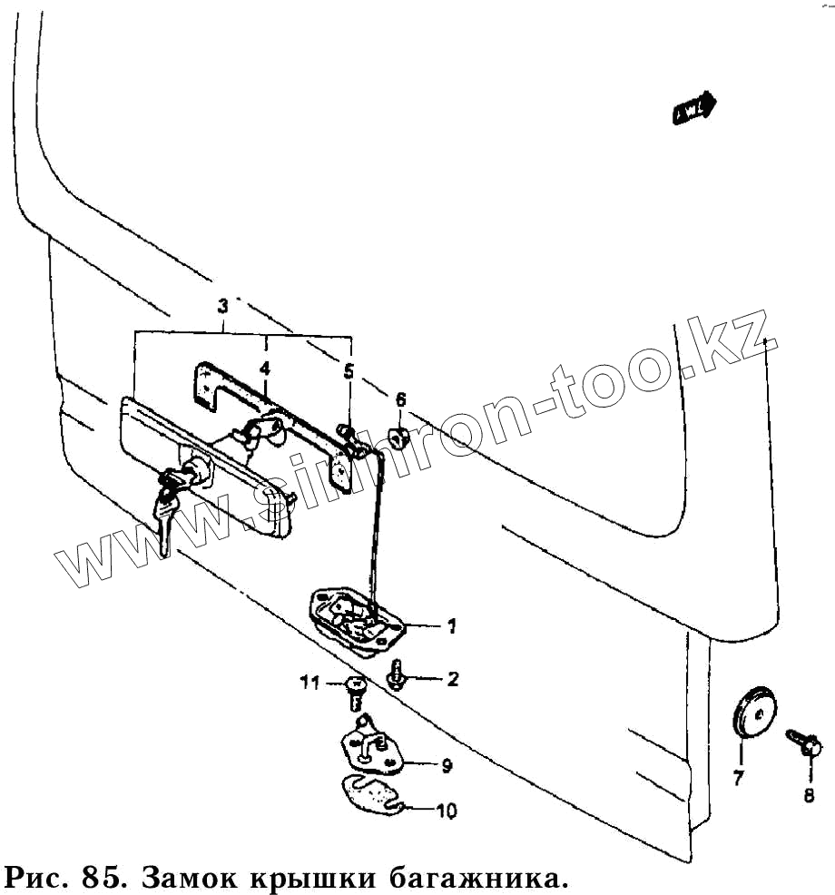 Каталог запасных частей к технике: Daewoo Damas. Замок крышки багажника