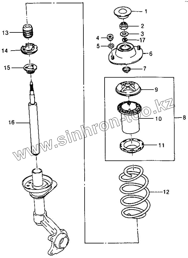 Каталог запасных частей к технике: Daewoo Espero. Амортизатор передней подвески