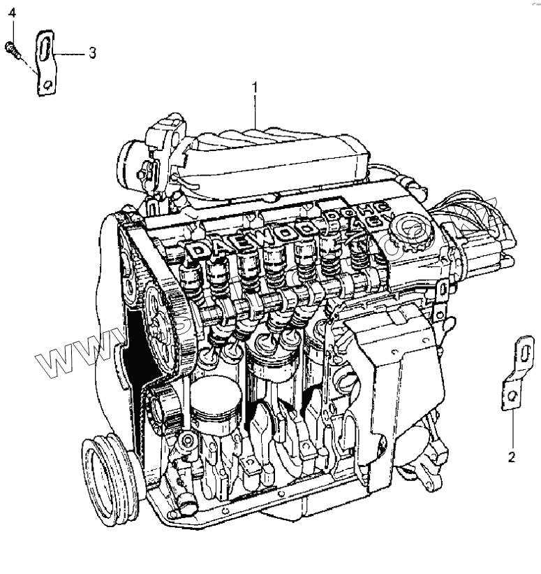 Каталог запасных частей к технике: Daewoo Espero. Двигатель в сборе (1.5 DOHC)