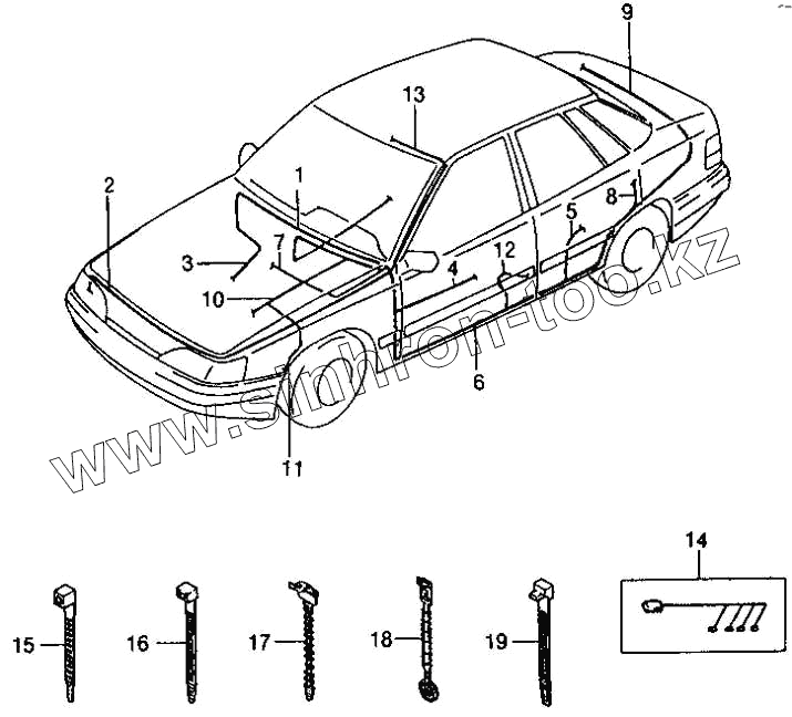 Каталог запасных частей к технике: Daewoo Espero. Электрическая проводка стеклоочистителей и стеклоомывателей