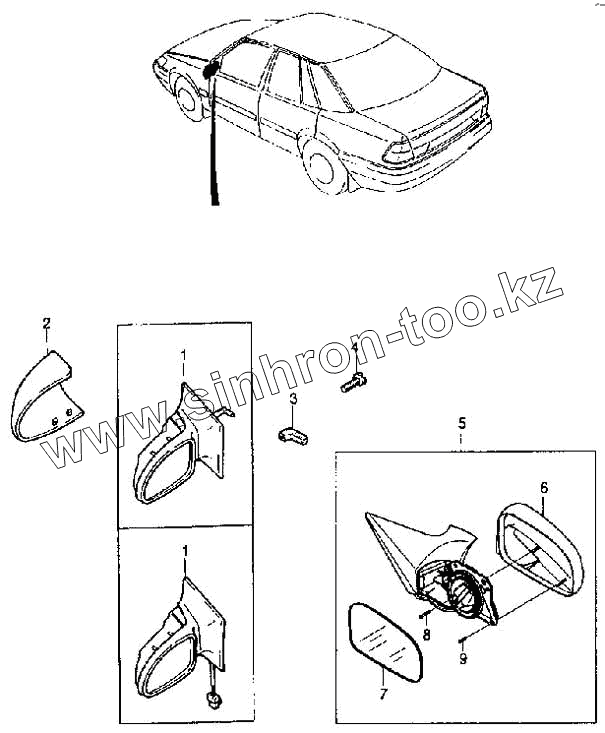 Каталог запасных частей к технике: Daewoo Espero. Наружное зеркало