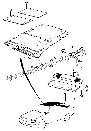 Каталог запасных частей к технике: Daewoo Espero. Отделка крыши салона