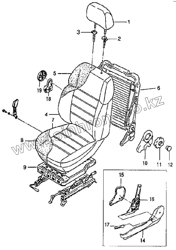 Каталог запасных частей к технике: Daewoo Espero. Переднее сиденье II