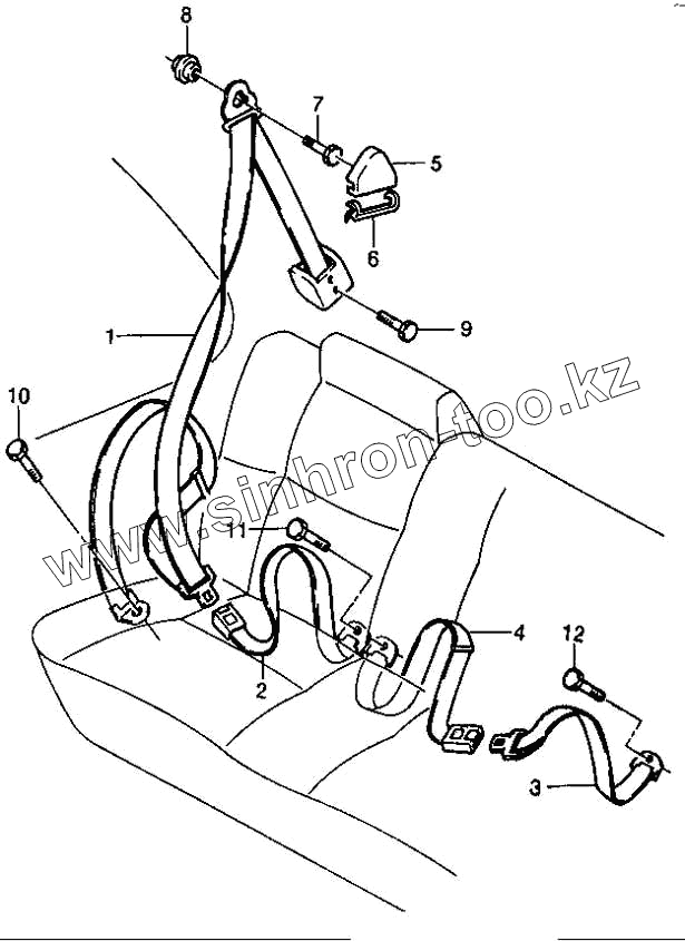 Каталог запасных частей к технике: Daewoo Espero. Ремни безопасности заднего сидения