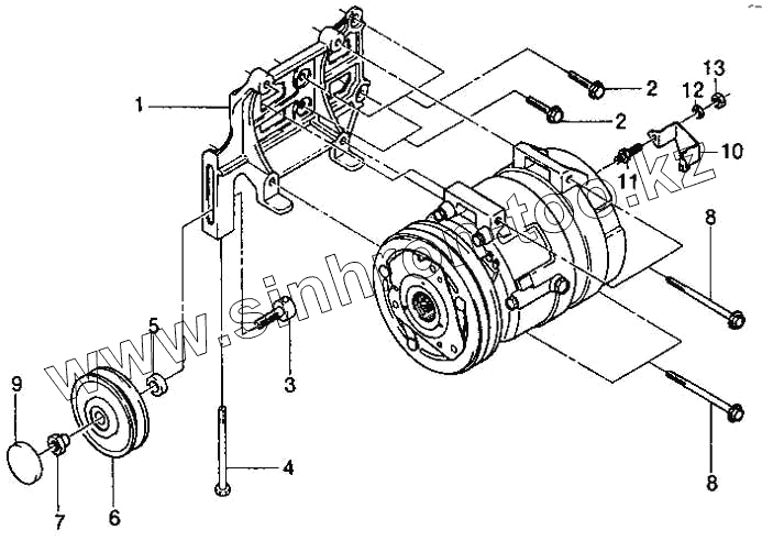 Каталог запасных частей к технике: Daewoo Espero. Установка компрессора (1.5 DOHC)