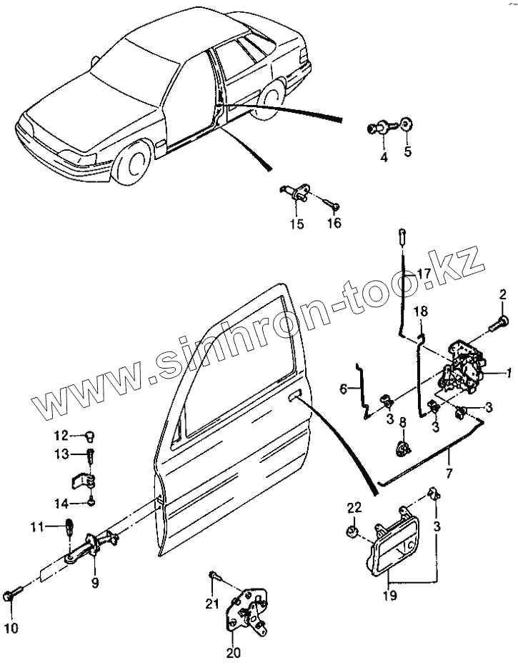 Каталог запасных частей к технике: Daewoo Espero. Замок передней двери