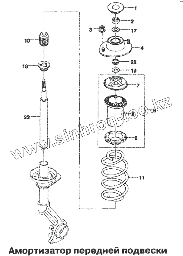 Каталог запасных частей к технике: Daewoo Lanos. Амортизатор передней подвески