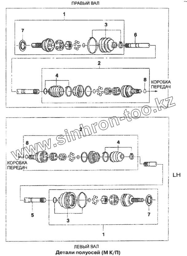Каталог запасных частей к технике: Daewoo Lanos. Детали полуосей (МКПП)