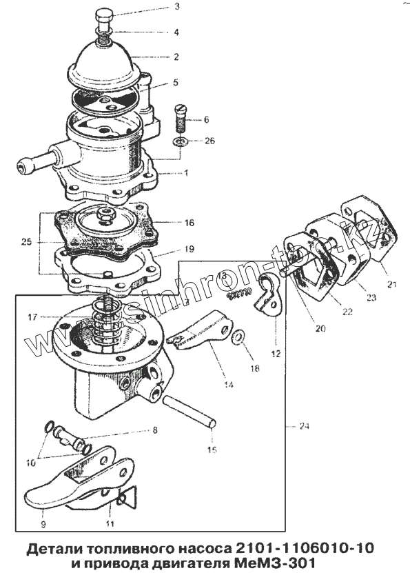 Детали топливного насоса и привода двигателя МеМЗ-301
