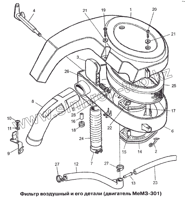 Фильтр воздушный и его детали двигателя МеМЗ-301