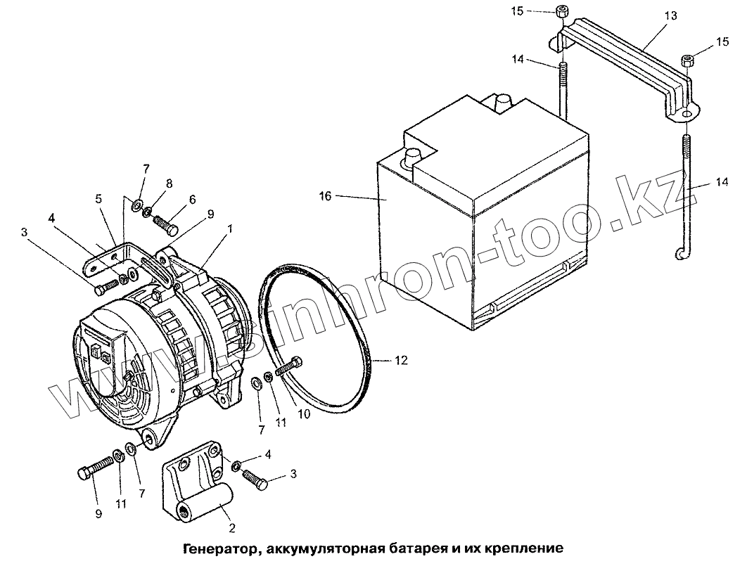 Генератор, аккумуляторной батареи и их крепление