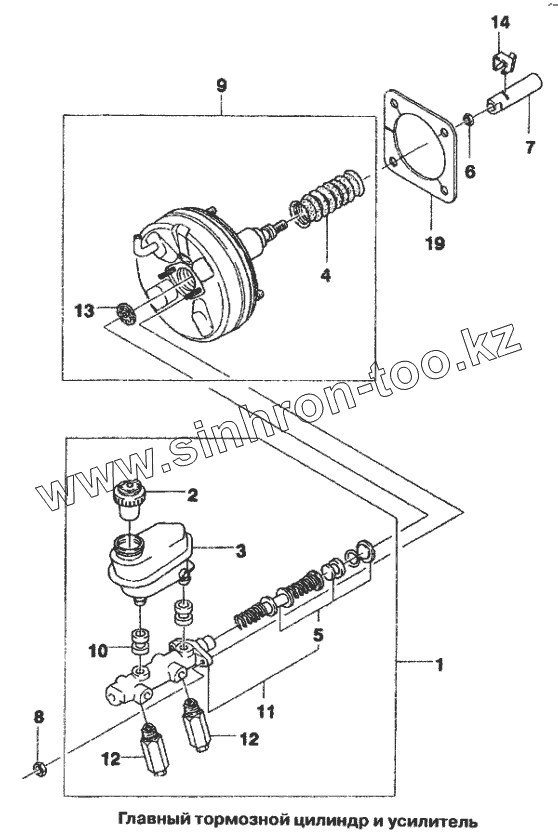Каталог запасных частей к технике: Daewoo Lanos. Главный тормозной цилиндр и усилитель